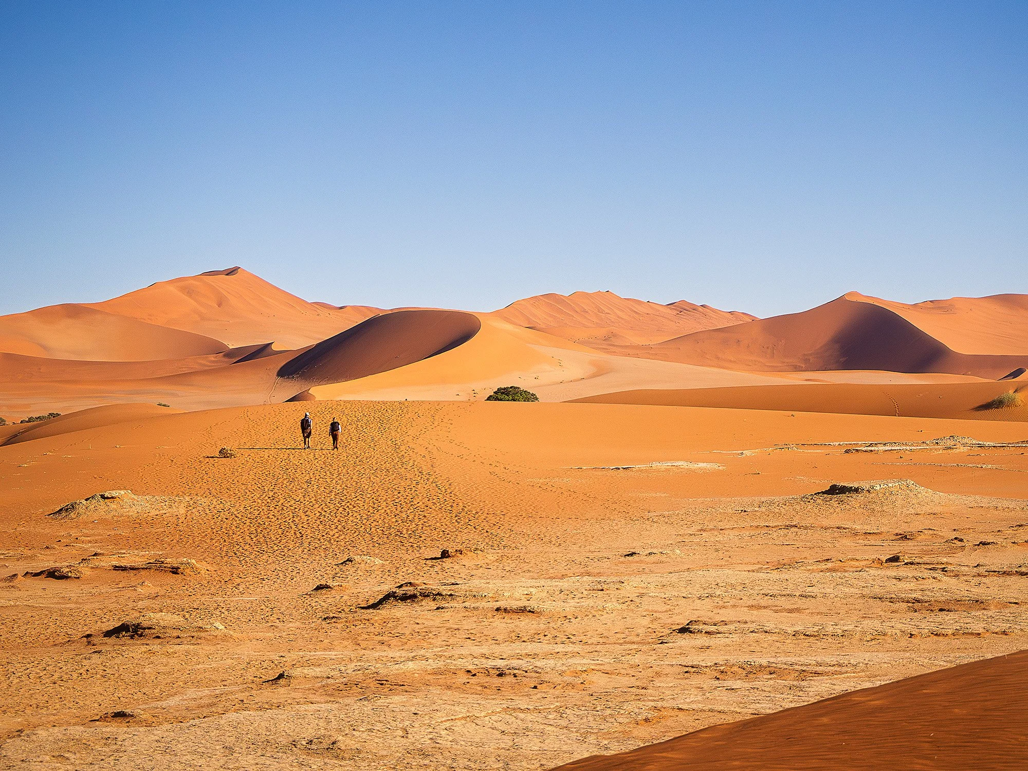 They say it is the oldest desert in the world; I know it is the most beautiful. At dawn, the red dunes of Sossusvlei ignite and clash with the relentless blue sky, tracing geometric paths helped by the wind. The acacias of Deadvlei have stood there for 900 years, on cracked white clay. Dry, not dead. Silent.